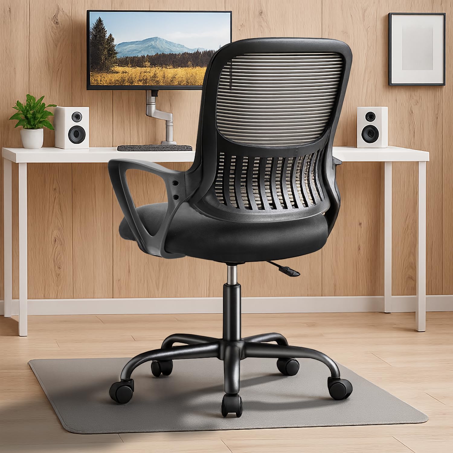 - ☑️【Ergonomisches Design】: Der stuhl verfügt über eine geschwungene Rückenlehne, die sich perfekt an die Wirbelsäule anpasst und ergonomische Unterstützung bietet, um den Druck zu entlasten und Ihnen das beste Sitzerlebnis zu bieten. Das hochwertige, atmungsaktive Netzrückenmaterial hält Ihren Körper kühl und sorgt für maximalen Komfort und weniger Ermüdung.