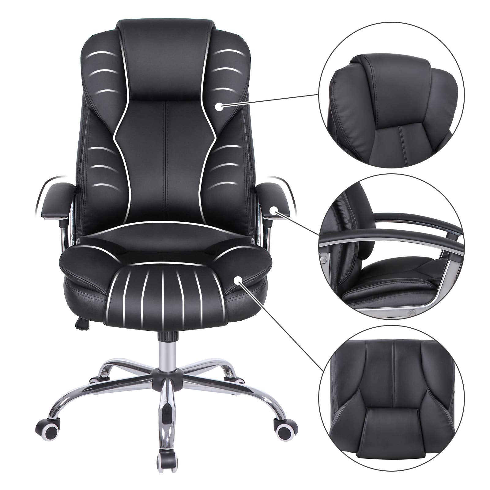 - Hohe Stabilität und lange Haltbarkeit: Die wichtigen Teile (wie Armlehnen, Räder, Gasdruckfeder usw.) wurden verbessert und haben BIFMA bestanden. Mit einem Durchmesser des Fußkreuzes von ca. 66 cm wird die ausgezeichnete Stabilität gewährleistet und von SGS verifiziert. Der Bürostuhl ist robust und langlebig. Max. Belastbarkeit: 150 kg