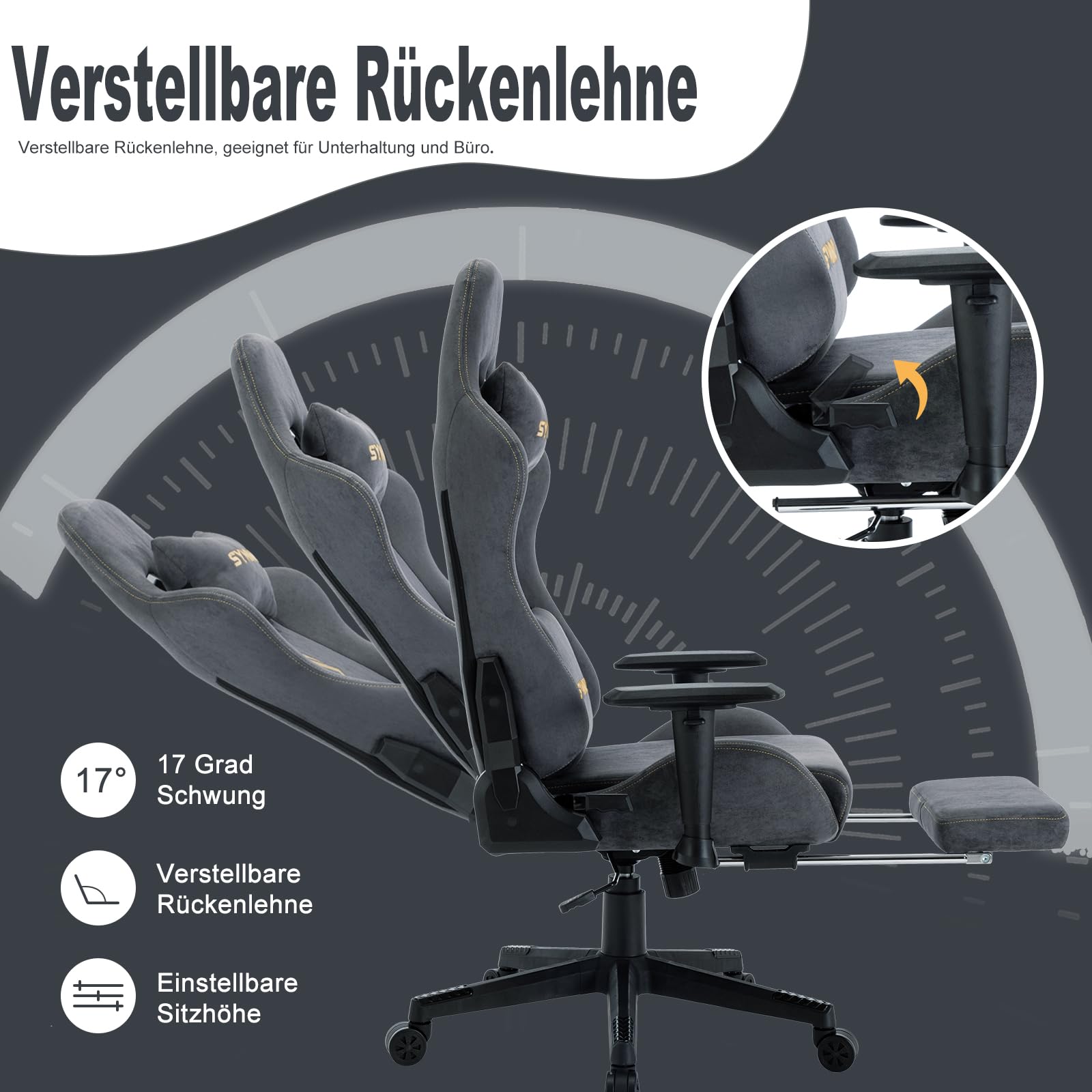 Symino Gaming Stuhl Ergonomisch mit Fußstütze Stoff Grau